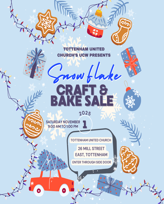 Start your Christmas shopping early at our Craft and Bake Sale on Saturday, November 1st. Doors open at 9 am. Local artisans and vendors are featured. There will also be fresh baking from our United Church Women. All are welcome.